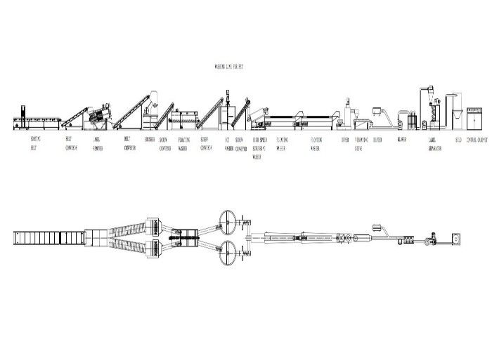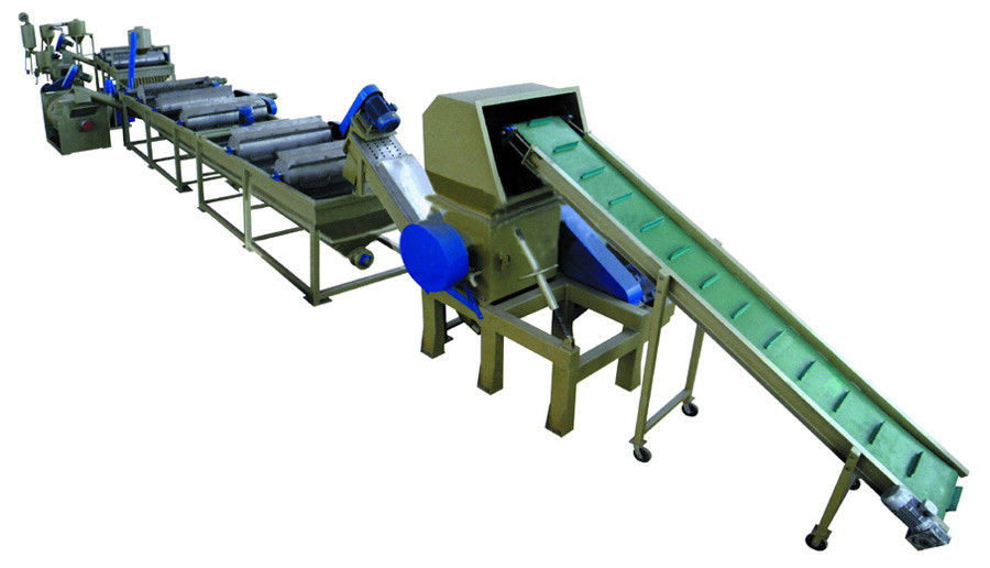 El proceso de la línea entera: El lavado del firction de la trituradora de Plasic del transportador de correa y el alimentador de desecación del máquina-tornillo risining el lavadora-alto enjuague de la lavadora de la fricción de la velocidad lavadora-horizontal desecan la tolva del extrusor de las etapas del máquina-tolva-tornillo alimentador-PE PP dos. La línea entera dispositivo será diseñada según el grado sucio, embalando método de materia prima.