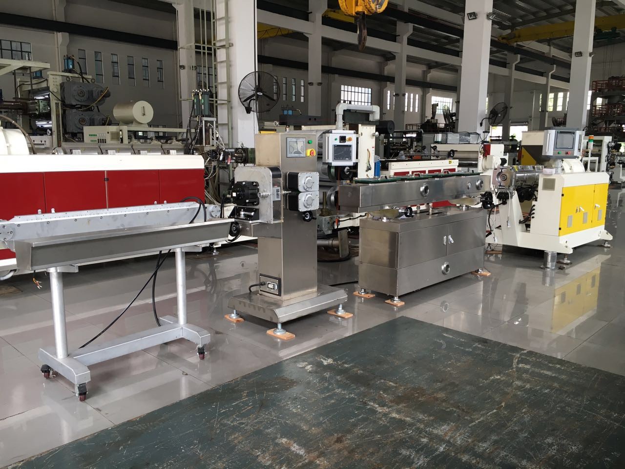 2. Los tornillos gemelos cónicos han aplicado el sistema del enfriado por aceite. El barril es refrescado por el sistema de enfriamiento especial del viento.