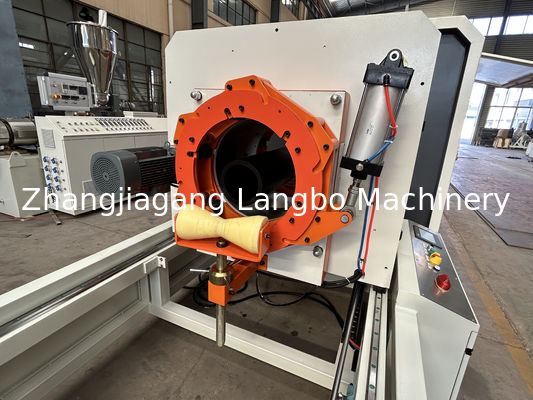 La máquina de corte de tuberías corta el tubo de PE a la longitud deseada programada en el HMI.