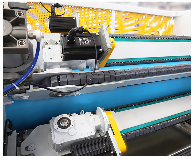 8. La unidad de extracción tira de la tubería a una velocidad constante, controlando su tensión y evitando que se hunda o se estire durante el proceso de producción.