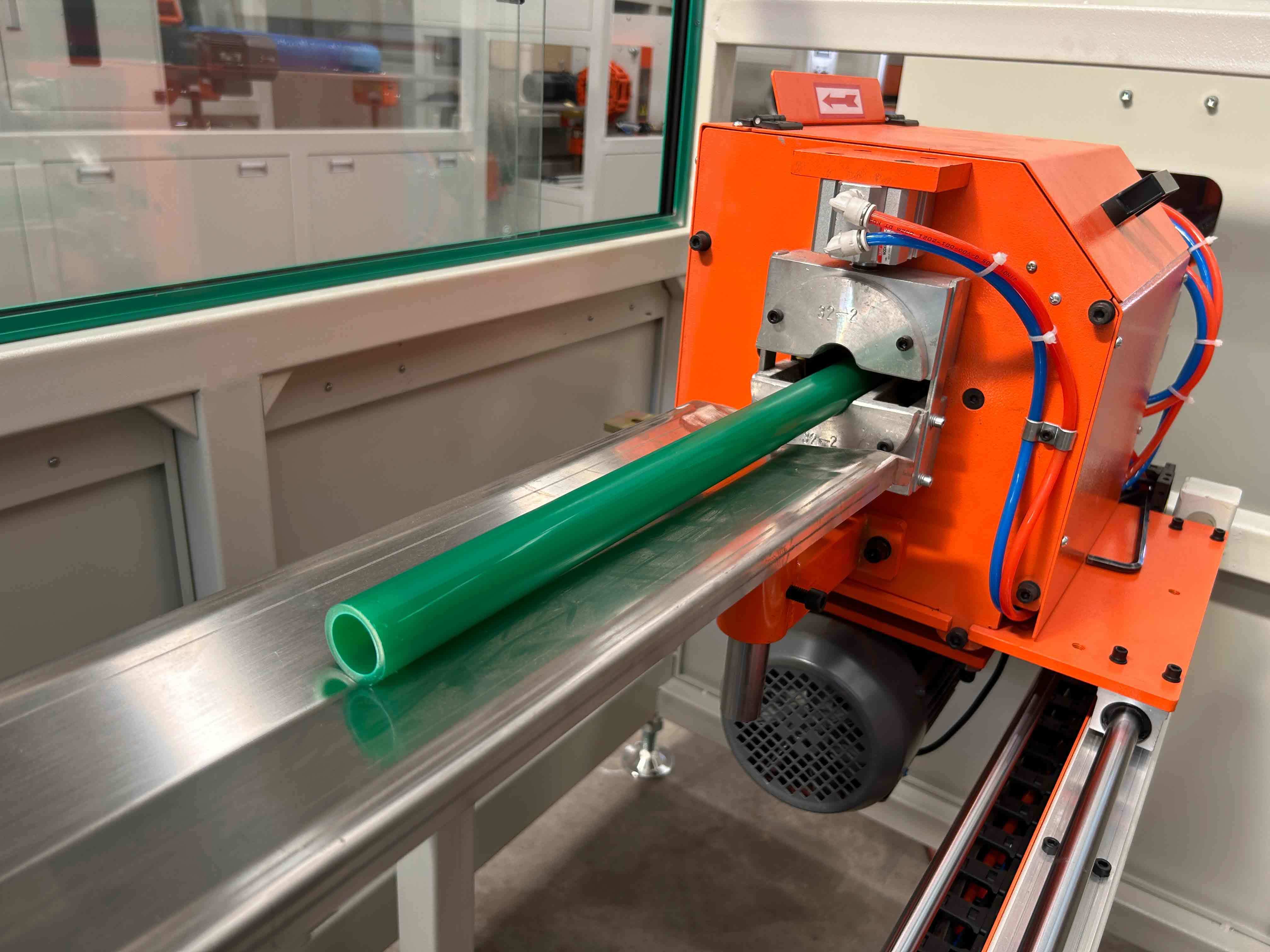 Un extractor tira del producto a una velocidad constante, y un cortador automático lo recorta a las longitudes requeridas.