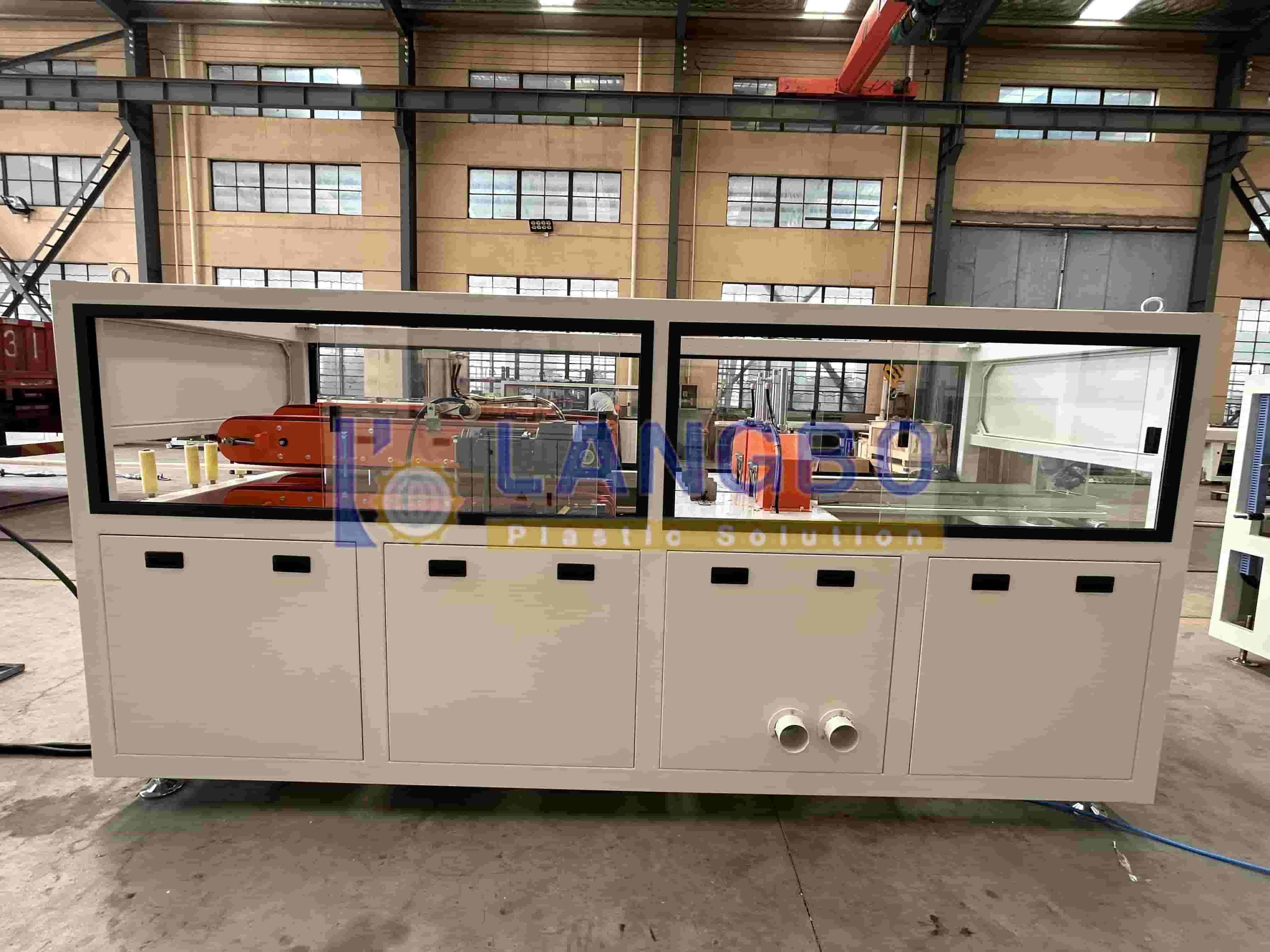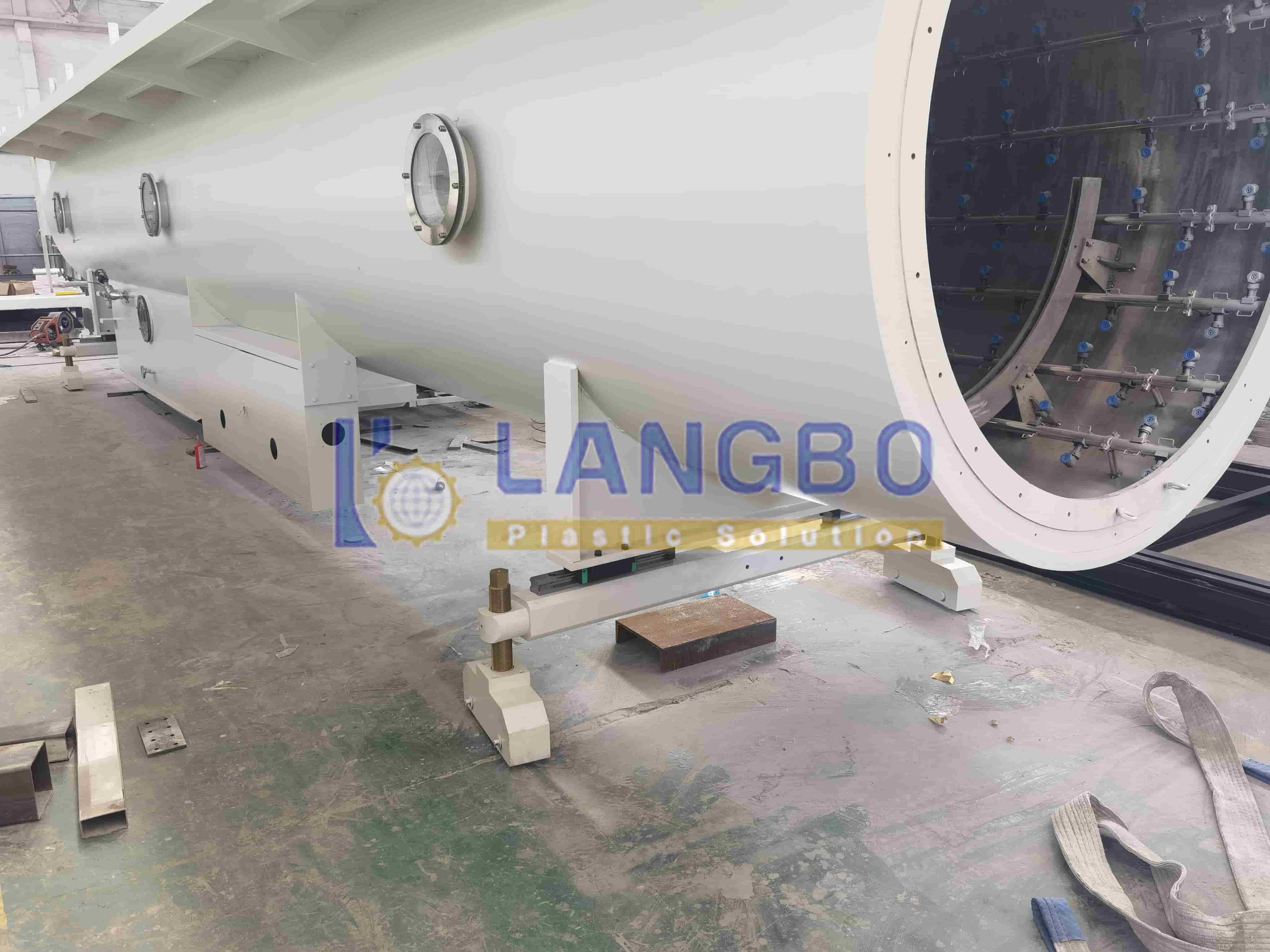 El tanque de calibración al vacío presenta una estructura de dos cámaras, que integra funciones de calibración al vacío y enfriamiento. Tanto el tanque de vacío como el tanque de enfriamiento por pulverización están hechos de acero inoxidable 304. El sistema de vacío de alto rendimiento garantiza un dimensionamiento preciso de la tubería.