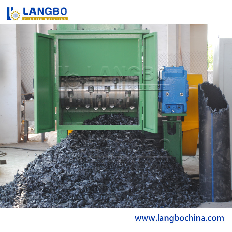 Before the HDPE pipe extrusion line runs smoothly to extrude pipes, workers need to start the machine and adjust every details during the whole process. In this process, there will produce many wasted pe melt lumps. It is big blocks and hard enough. Therefore it can't be dealt with crusher, it just can be processed by shredder. Our single shaft shredder has high rotation speed and shape knifives. Workers put the wasted melt lumps through the port and particles will be fall from the outlet.