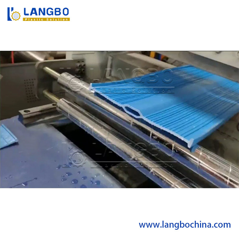 This PVC profile extrusion line adopts conical twin screw extruder, which is suitable for both PVC powder and PVC granules. It has degassing system to ensure the excellent material plasticization. The high speed mould is available, and it can largely increase the productivity.