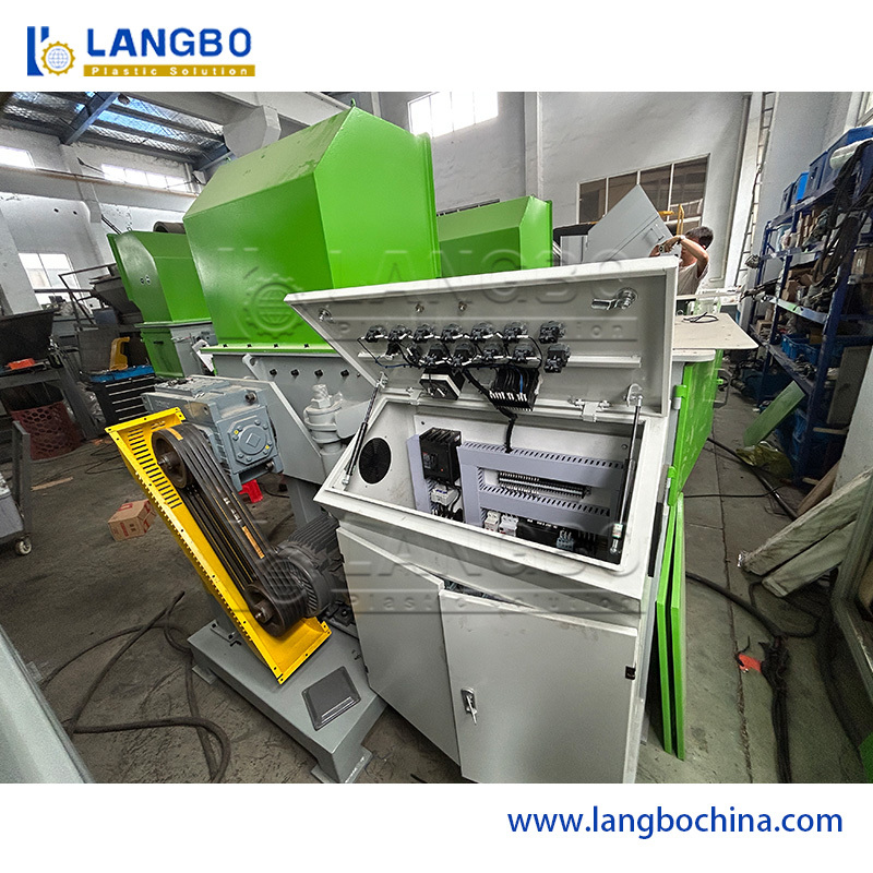 Antes de operar la línea de extrusión de tuberías de HDPE, los trabajadores deben encender la máquina y ajustar todos los parámetros durante el proceso. Durante este procedimiento, se generan grumos de fusión de PE residuales como bloques grandes y duros que no pueden ser procesados por trituradoras estándar. Nuestra trituradora de un solo eje, que cuenta con alta velocidad de rotación y cuchillas de forma especializada, procesa eficientemente estos materiales a través del puerto de entrada, con partículas descargadas desde la salida.