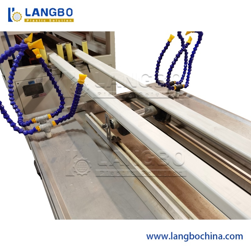 Construida con un robusto marco de acero y un cuerpo de acero inoxidable SUS 304, la tabla de calibración incorpora un ajuste de posición multidimensional.La ubicación estratégica de las bombas de agua y los calibradores de vacío garantiza la rápida formación y enfriamiento de los perfiles de PVC, con una longitud suficiente para la formación completa del perfil.