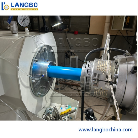 The first step of pipe production is the preparation of raw material. Customers can mix the PVC powder with other additives by themself. The mixture will be feeded into extruder. The material will be plasticized in the extruder and then be extruded into the mould. The material is shaped by mould and goes out with the pipe looking. The pipe extruded from the mould is hot and soft. The pipe with unstable shape will be calibrated and cooled by vacuum sleeve in the vacuum calibration tank. And then the pipe goes into the cooling tank for a further cooling. Haul off unit stands next to the cooling tank and take the pipe away from the extruder. According to the defined length, the pipe will be cut and then packed for transport.