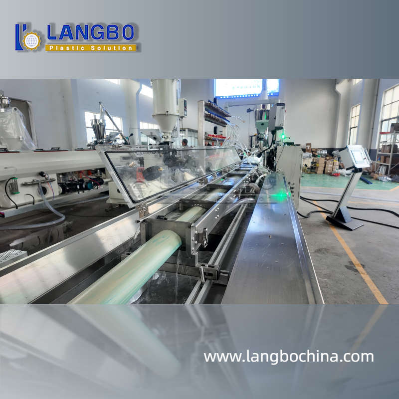 La línea de extrusión incorpora una extrusora cónica de doble tornillo compatible tanto con polvo de PVC como con gránulos.Las características incluyen el sistema de desgasificación para la plastificación superior del material y la tecnología de molde de alta velocidad para una mayor productividad.