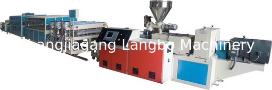 La máquina consiste extrusor y co-extrusor principal, distribuidor, bloque del moldeado del calibrador, estante de enfriamiento, recorrido apagado, cortador y apilador.